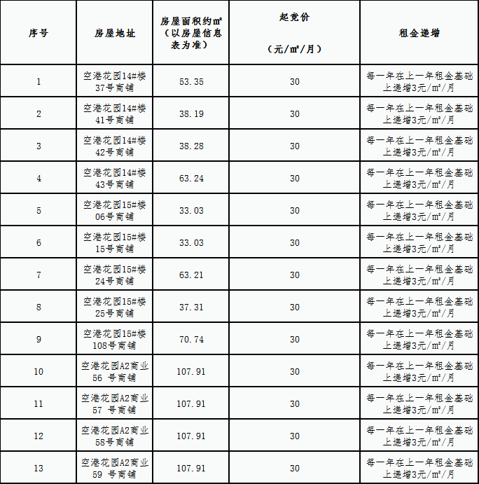 空港花园安置房小区房屋租赁竞拍公告