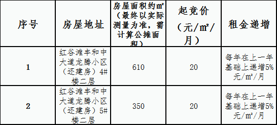 三、本次竞拍只报起竞价,房屋每间租金起竞价为:
