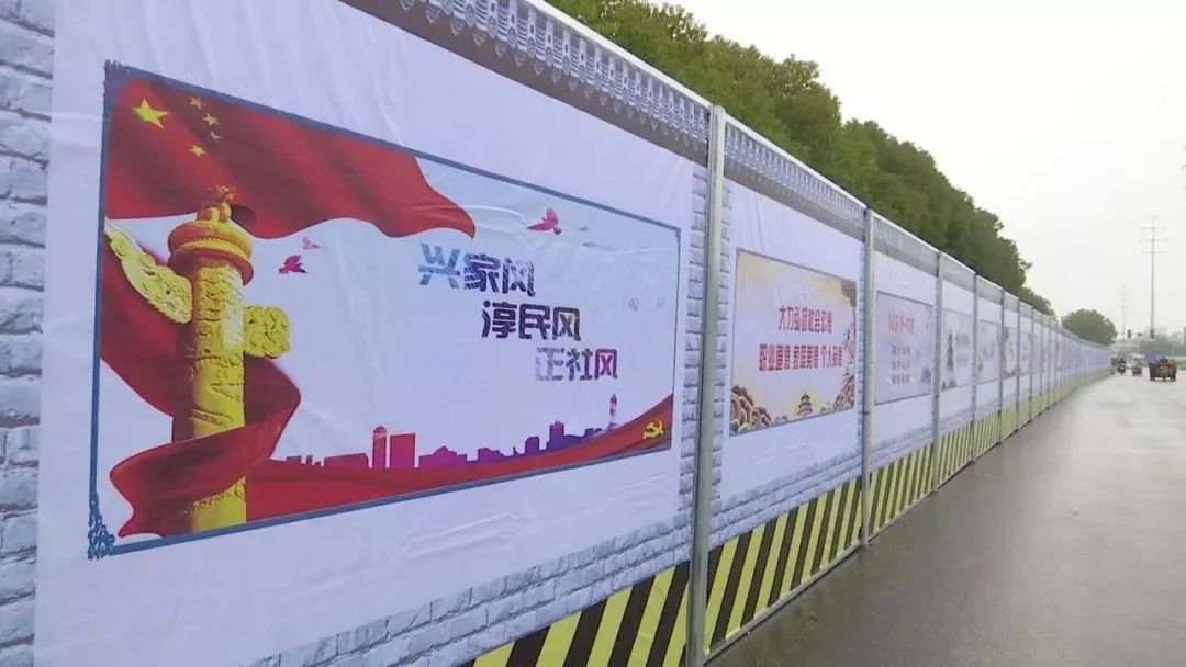 同时,为给市民一个舒适的出行环保,双港东两侧沿线全部更换成标准化围档,出入口进行封闭,并将公益广告全部更换到位,所有路口标示标牌、安全警示标志、警示灯基本到位。