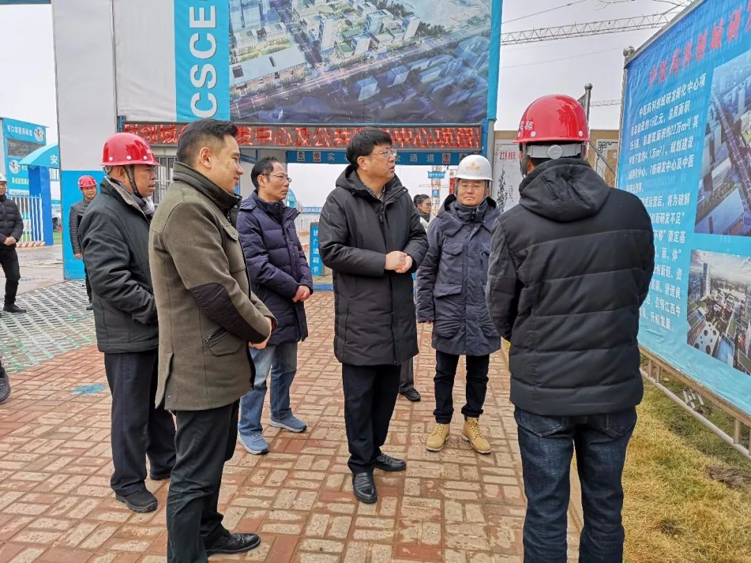 赵金城一行深入标准厂房、会展交易中心、公共研发中心及公共服务中心等工地进行实地察看。金开九州jiuzhou(中国)下属金力公司副总经理程智珩详细介绍了中医药科创城发展由来、功能定位、发展布局、发展目标并简要推介了中医药科创城内已入驻企业和即将入驻企业的基本情况和产品展示。