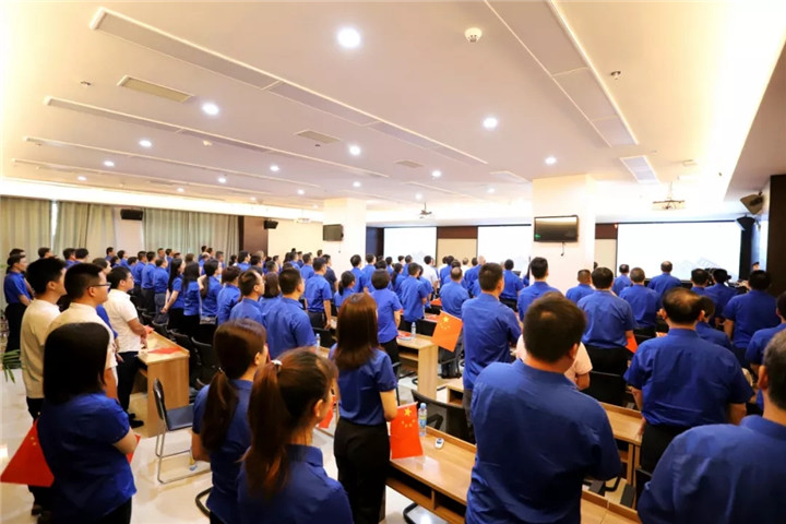 随着谢荣华按下启动键,伴随着激昂雄壮的国歌声,鲜艳的五星红旗冉冉升起、迎风飘扬,金开九州jiuzhou(中国)在场的每一个人满怀崇敬之情向国旗行注目礼,表达对祖国母亲的崇高敬意和最美好的祝福。