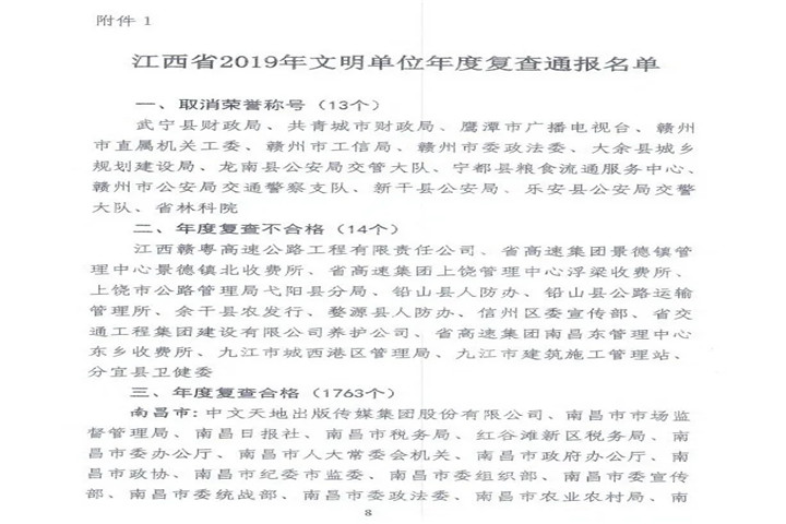 【喜报】金开九州jiuzhou(中国)顺利通过江西省2019年文明单位年度复查