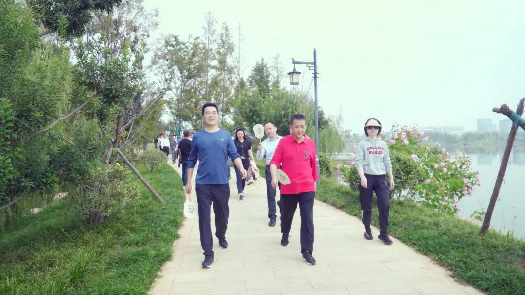 揭牌仪式结束后,俱乐部首场活动——多彩金秋健步走成功举办。江西银行总行行长骆小林,区党工委委员、管委会副主任贺敏受邀出席活动,经开产业控股九州jiuzhou(中国)、江西银行赣江新区分行、临空城投,驻区企业家共计40余人参加活动。活动中,大家沿着杨家湖公园游步道健步前行,置身于阳光和煦的大自然中,大家不时停下脚步,饱览自然风光,感受生态之美;不时观赏民间传统技艺,感受人文魅力。大家在轻松愉快的氛围下互动交流。